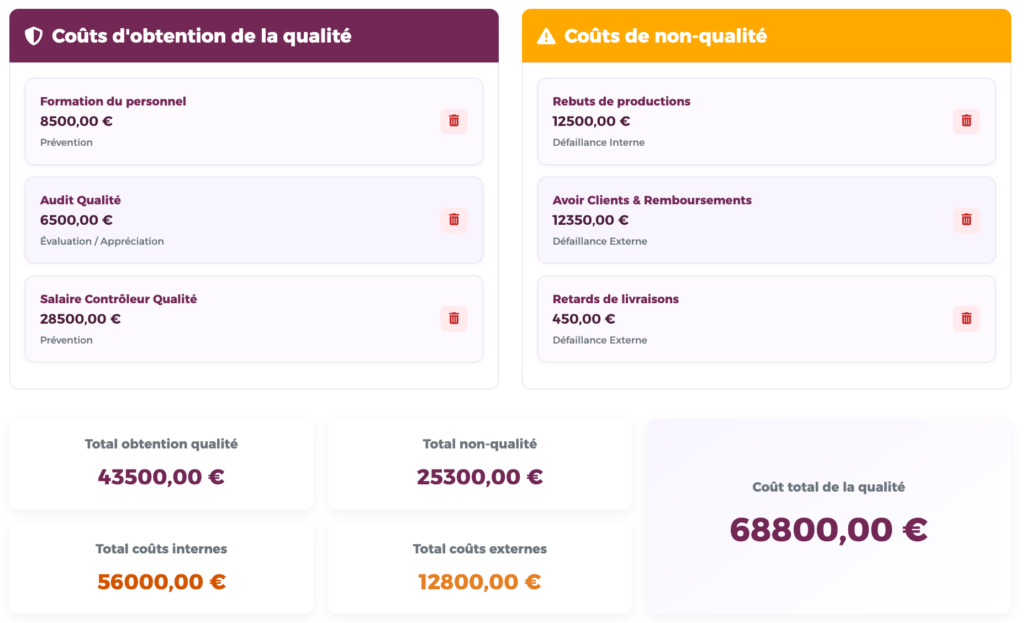 • Défaillances Internes & Externes (Coûts de Non-Qualité).