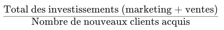- Coût d’Acquisition Client (CAC) : Ce que coûte en moyenne le recrutement d’un nouveau client.