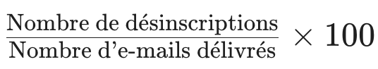 - Taux de désabonnement (ou Taux d’attrition) : Proportion de contacts quittant la base de données après un envoi.