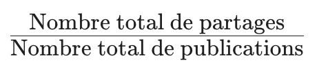 - Taux d’amplification : Nombre moyen de partages par publication.