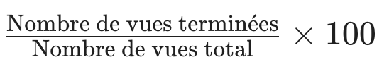 - Taux de rétention (ou de complétion) : Pourcentage de personnes ayant regardé la vidéo jusqu’au bout.