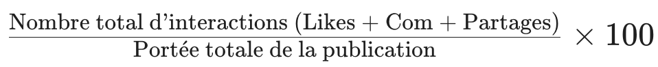 C’est l’indicateur roi sur les réseaux sociaux. Il mesure l’interaction réelle de la communauté avec une publication.